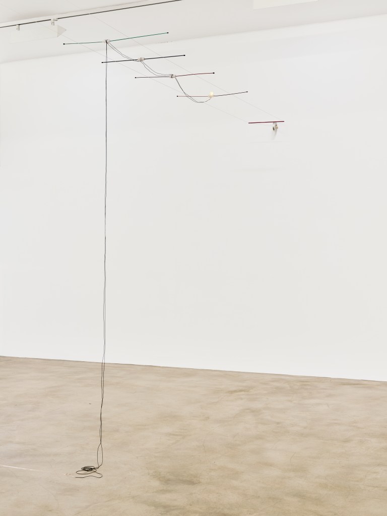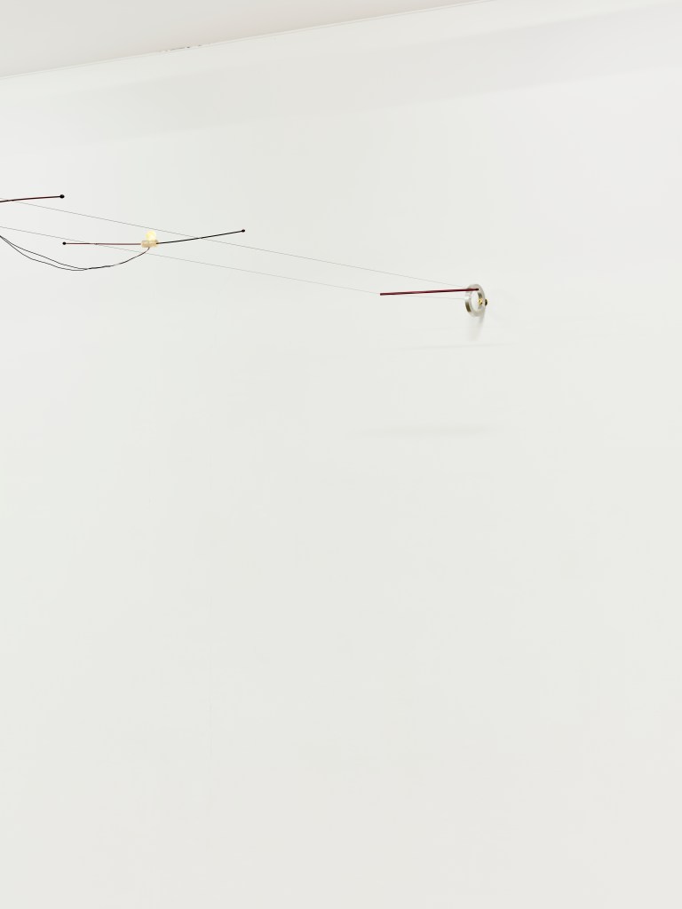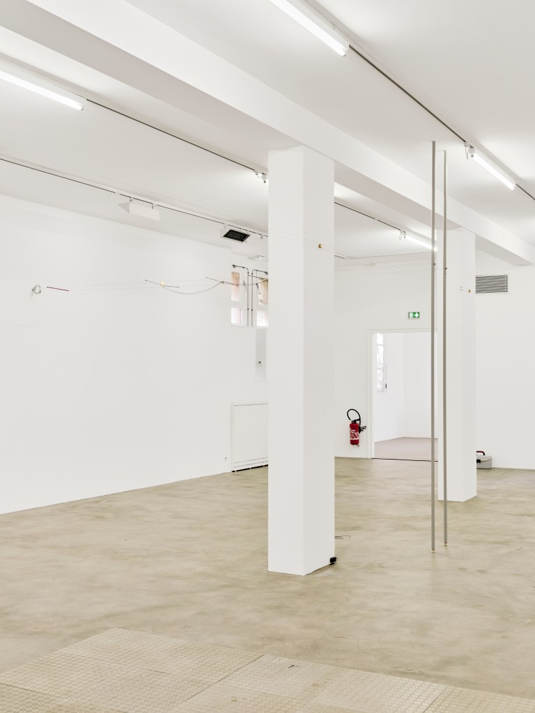 Cette exposition est un carrefour de routes pour les visiteureuses : rêveries intersidérales, rétrovision critique de l’histoire du “progrès” occidental, flux de conscience, tableaux de l’ennui et de cette solitude flottante propre aux espaces urbains, utopies fleurissant dans les creux de nos contradictions… La galerie est aujourd’hui un espace habité de simulacres, de ready-made extraits de notre quotidien, de sculptures agissant comme des portails ou des déchirures du tissu spatio-temporel et de voyageureuses la traversant comme des comètes. Cette exposition est une distorsion de nos espaces communs : bureaux administratifs, garages, salons, et autres salles d’attente y sont comme bousculés, mais non pas sans un certain ordre. La galerie/galaxie est ici la plaque tournante de tous les possibles, le lieu de différents passages travaillés par les artistes. Si la gravité n’était pas de rigueur, j’aurais souhaité vous voir parcourir l’exposition en marchant sur la surface des murs et au plafond.