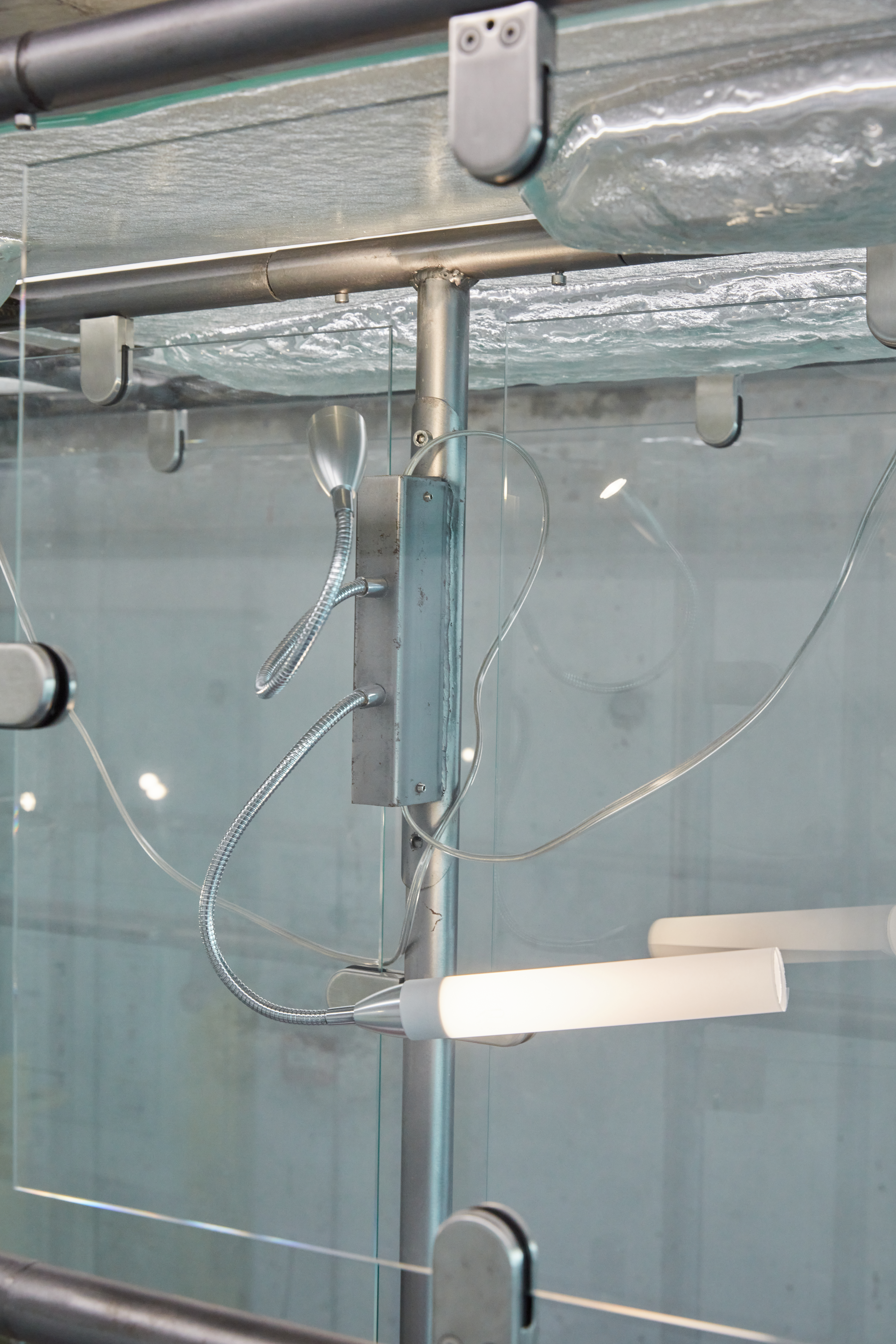 SOLO HOTEL est une sculpture des artistes Caroline Rose Curdy et Konstantinos Kyriakopoulos. Composéee principalement de verre et d’acier, elle se déploie et s’ajuste comme une boîte à outils à l’échelle d’un corps, à usage des futur·es résident·es d’Aperto qui pourront y installer leurs affaires, travailler et se reposer.