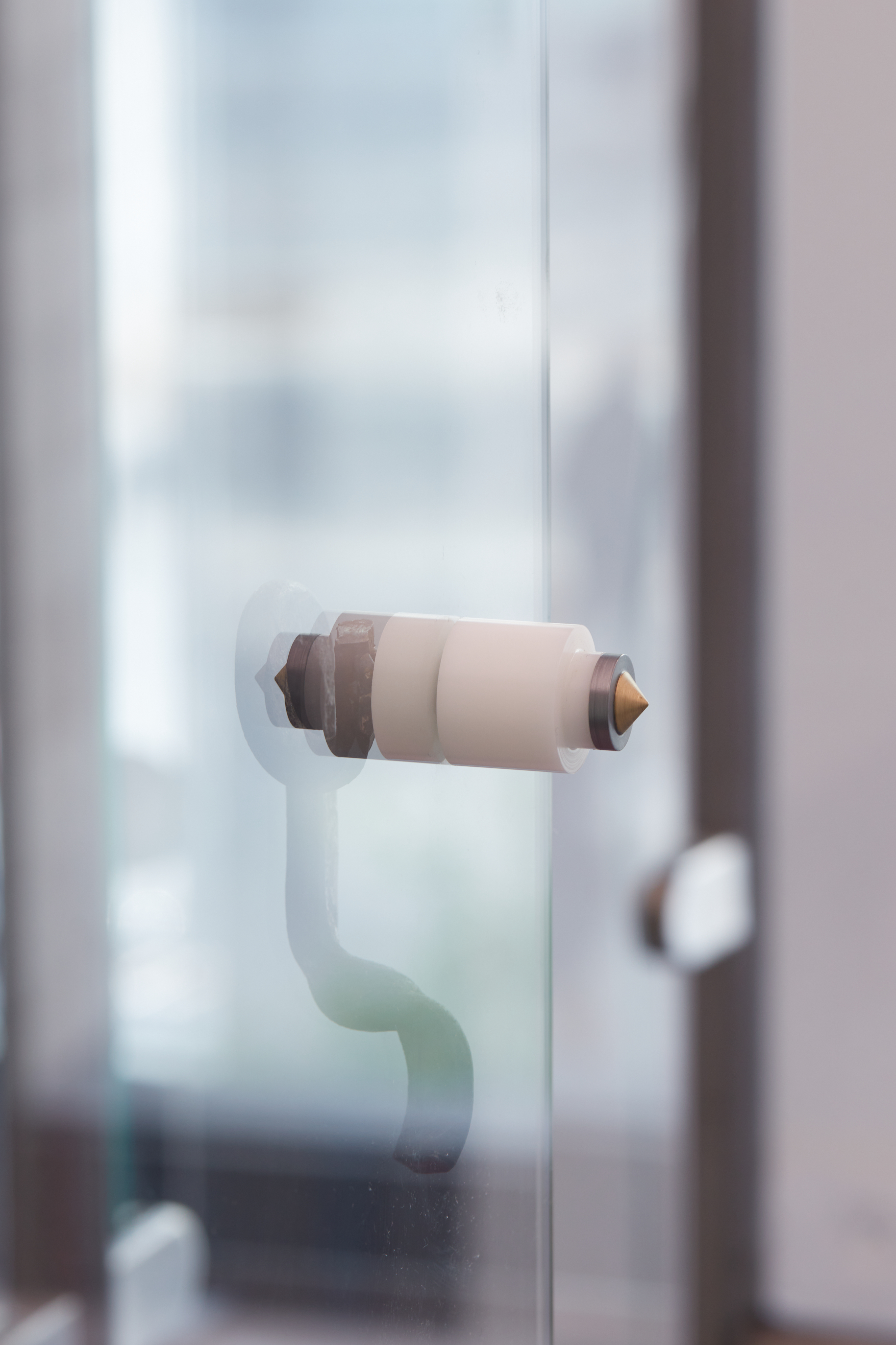 Acier, laiton, POM, calque, graphite, chocolats Mon Chéri, pogs, vernis incolore mat.